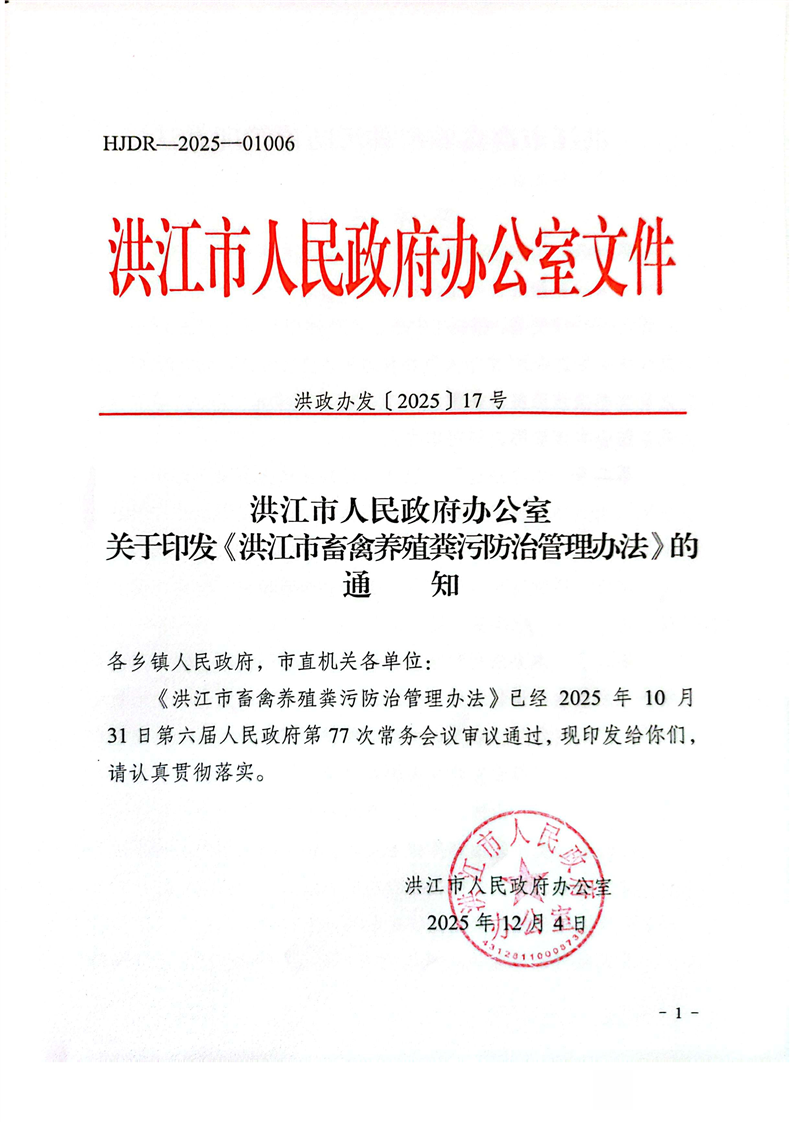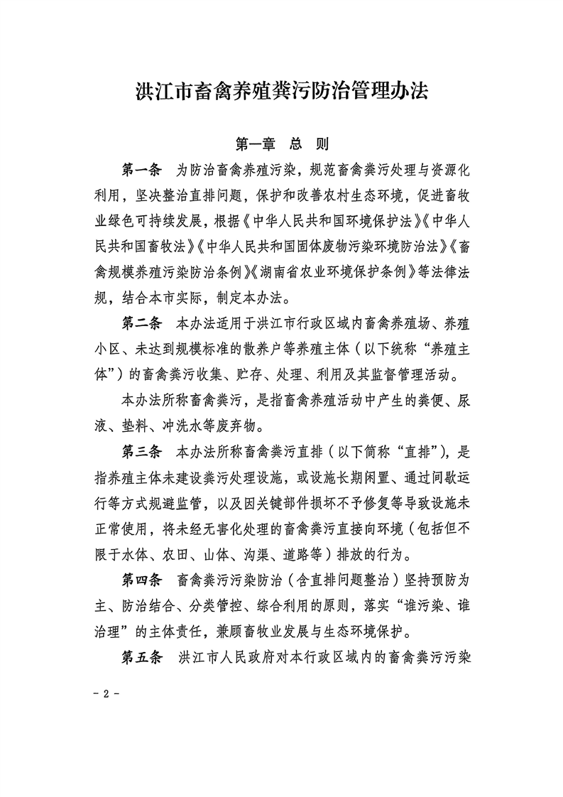 洪江市人民政府辦公室關于印發《洪江市畜禽養殖糞污防治管理辦法》的通知