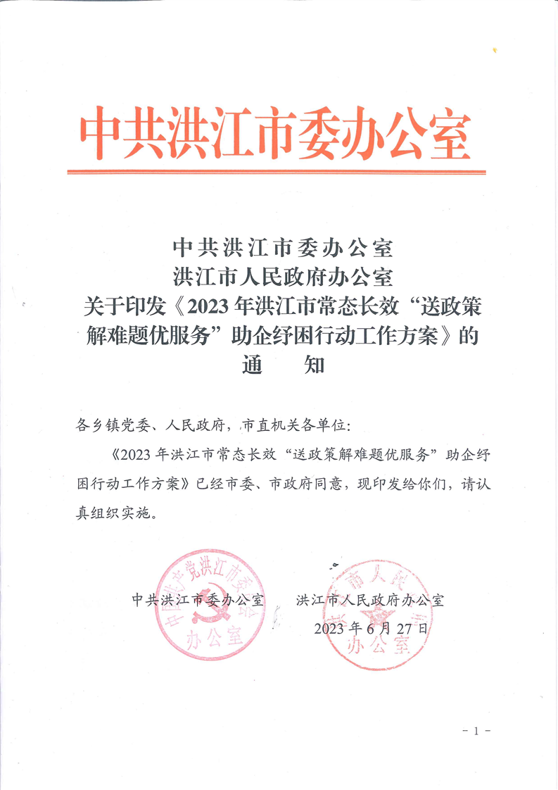 關于印發《2023 年洪江市常態長效“送政策解難題優服務”助企紓困行動工作方案》的通知