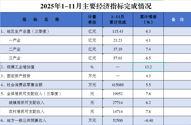 洪江市2025年1-11月主要經濟指標完成情況
