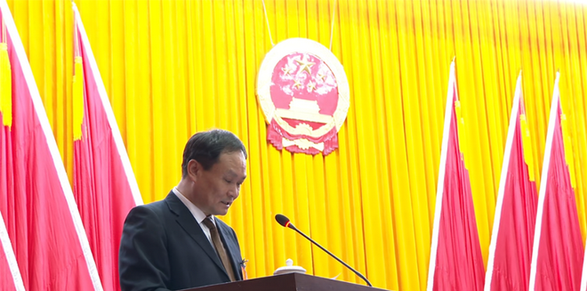 12月21日,市人大常委會主任謝景良向洪江市第六屆人民代表大會第五次會議報告工作。
