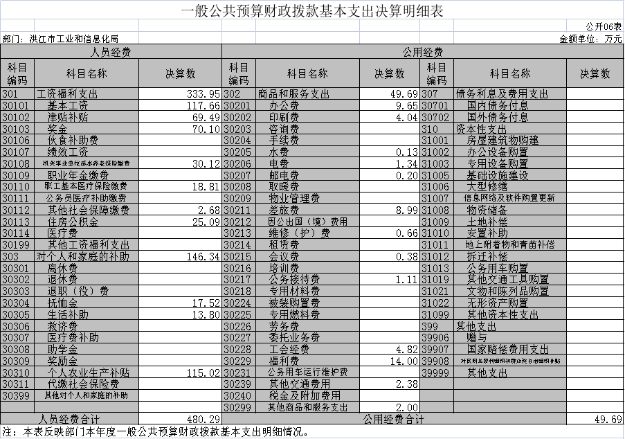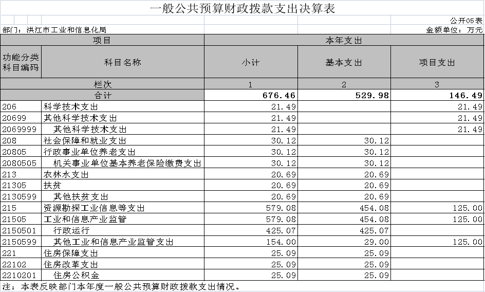 2021年度洪江市工業和信息化局部門決算