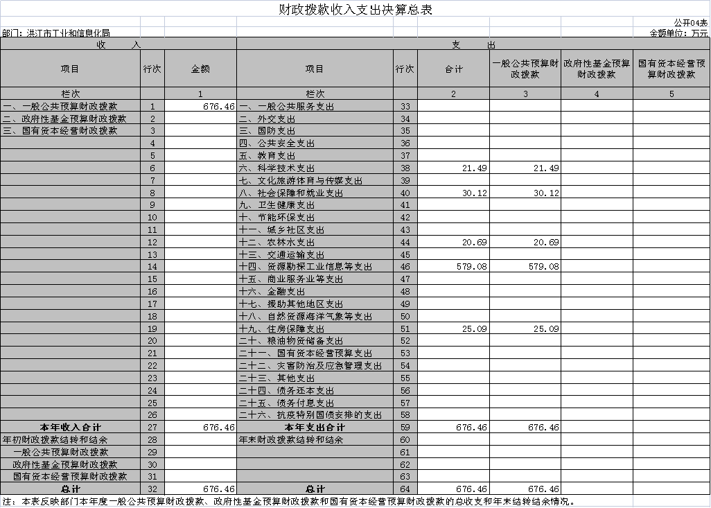 2021年度財政撥款支出676.46萬元,占本年支出合計100%,與上年相比,財政撥款支出減少1080.85萬元,減少61.5%,主要是人員經費,公用經費,對個人和家庭補助(春節退休人員一次性生活補助,恒光線線路改造的征地補償、青苗補償及誤工費);對企業補助主要是制造強省獎補、科技成果獎補、稅收獎補。