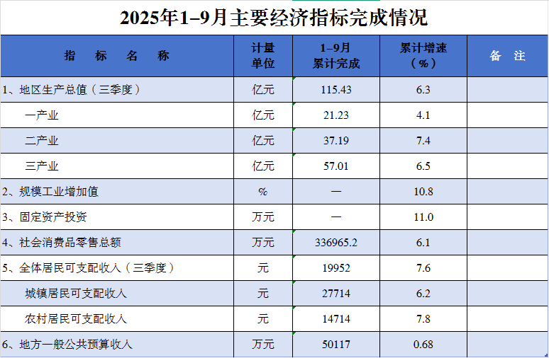 洪江市2025年1-9月主要經濟指標完成情況