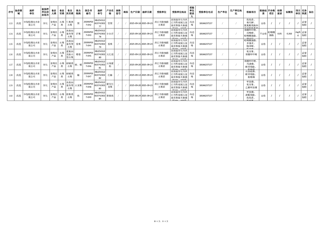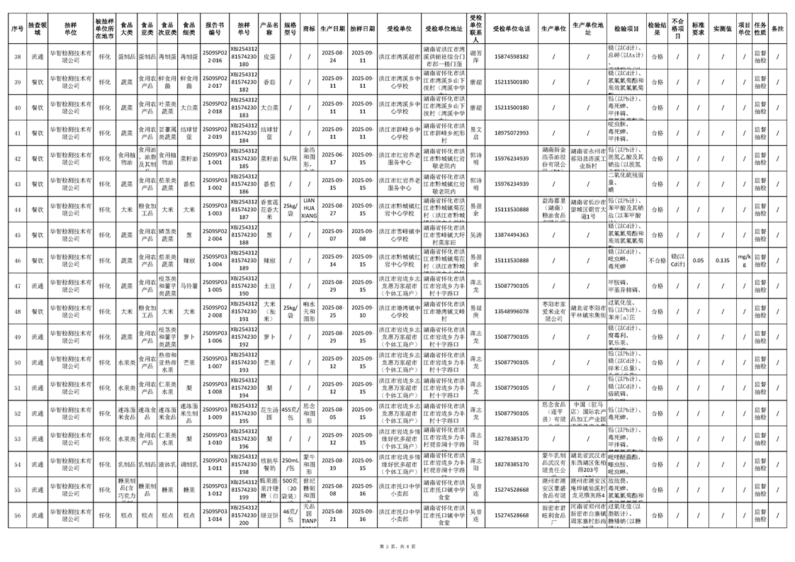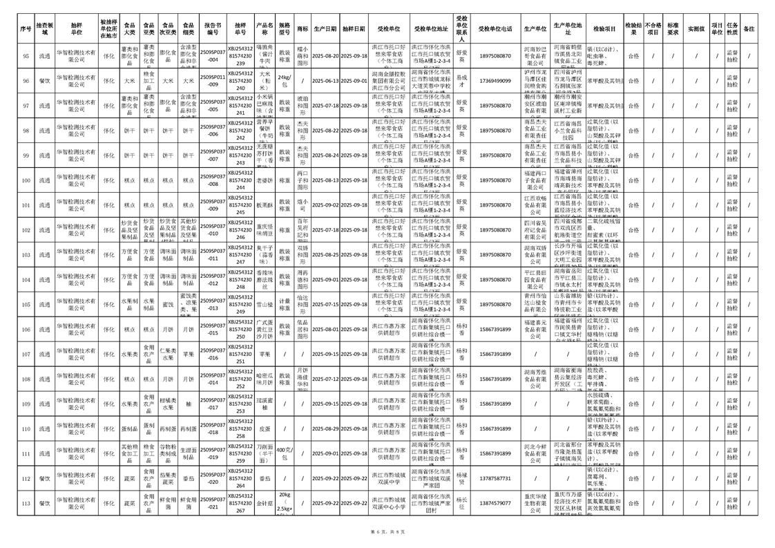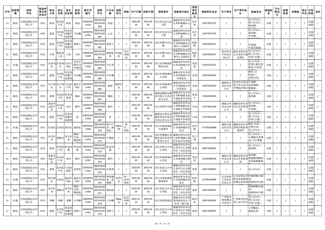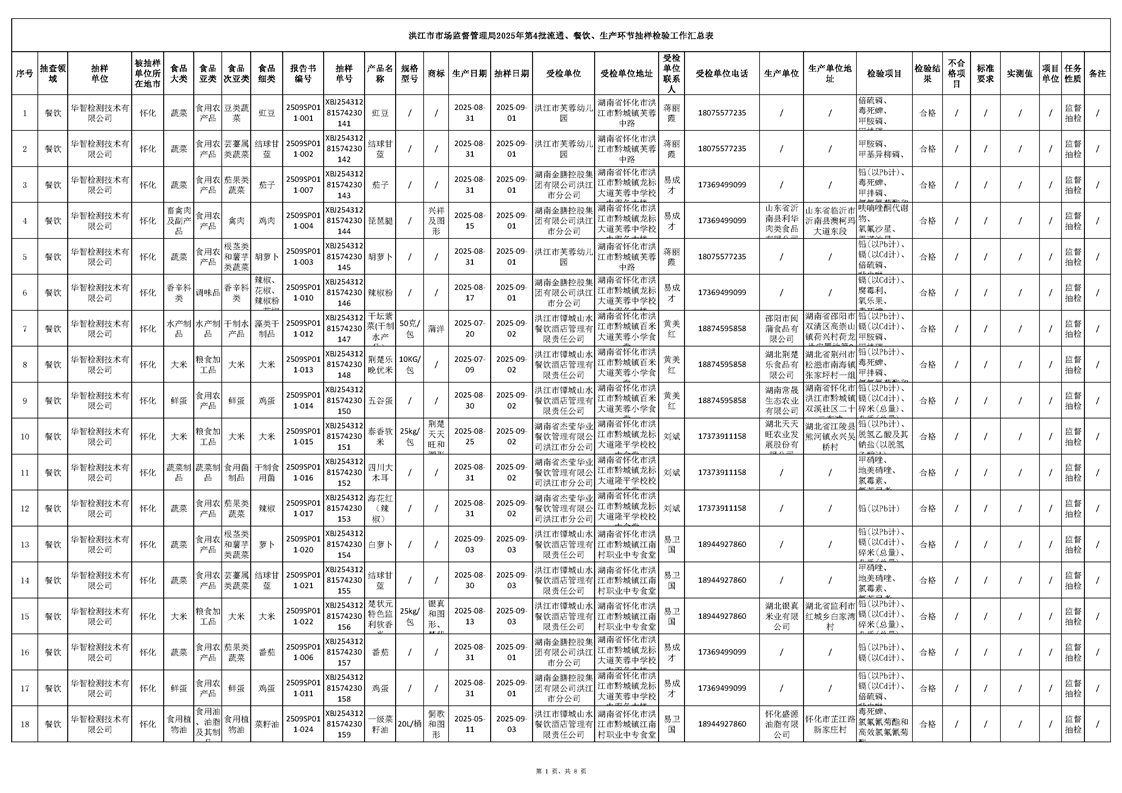 洪江市市場監督管理局2025年第4批流通、餐飲、生產環節抽樣檢驗工作匯總表