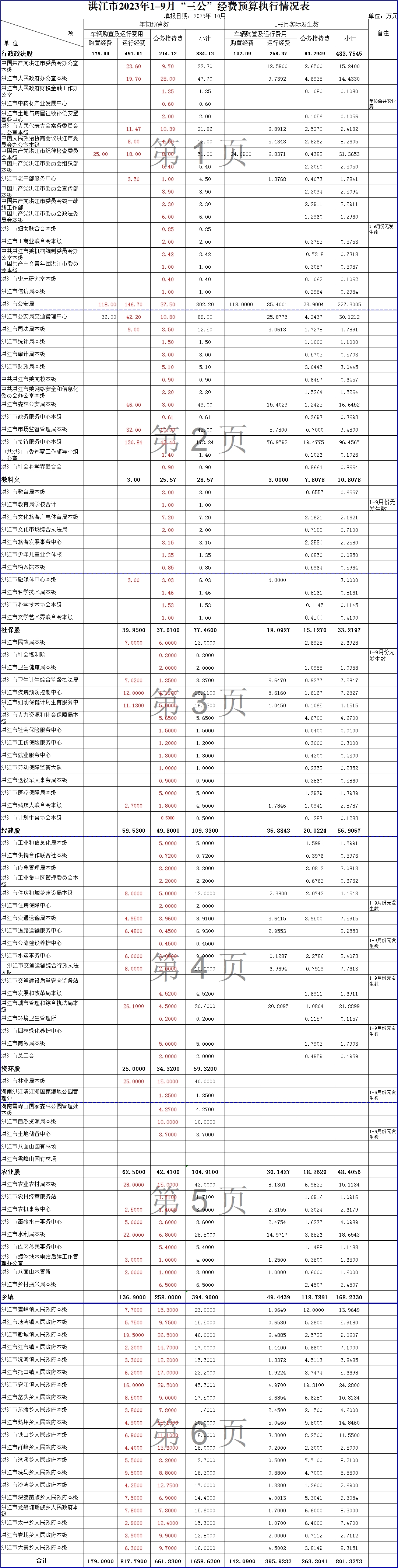 洪江市2023年1-9月“三公”經費預算執行公示