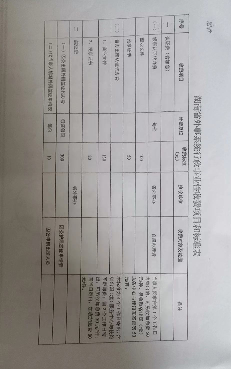 關于發布湖南省外事系統行政事業性收費標準