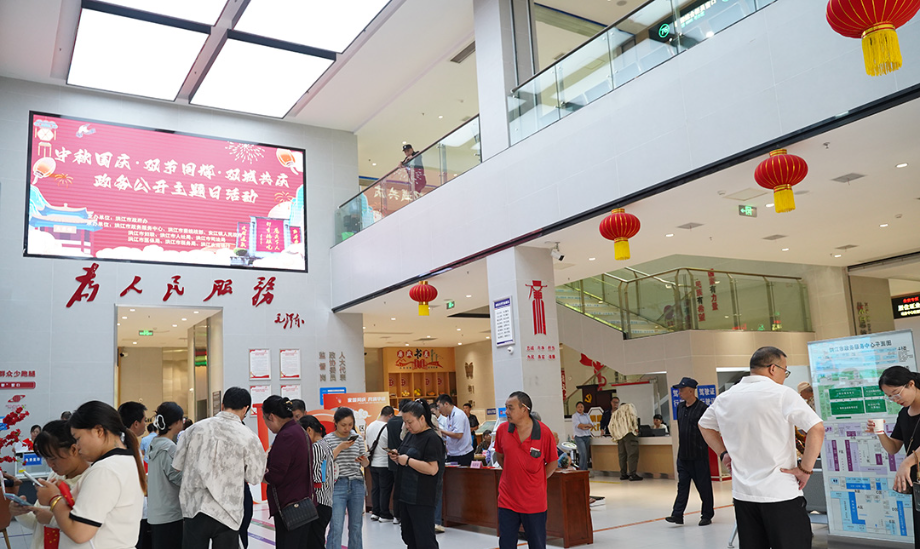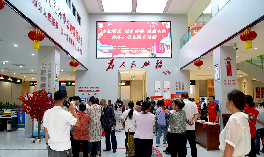 活動(dòng)以“月圓國(guó)盛·政務(wù)暖心”為主題,在洪江市政務(wù)服務(wù)中心主入口設(shè)置動(dòng)態(tài)電子屏,融合芙蓉樓地標(biāo)、玉兔明月、國(guó)旗華表等元素,配合《我和我的祖國(guó)》等紅色經(jīng)典音樂(lè),營(yíng)造出莊重而溫馨的節(jié)日氛圍。安江政務(wù)中心則以“雜交水稻紀(jì)念園”為地域特色,通過(guò)展板展示“紅色領(lǐng)航·家國(guó)同慶”子主題,雙城同步懸掛主題窗花、黨旗國(guó)旗,形成“一城一景”的政務(wù)服務(wù)新風(fēng)貌。