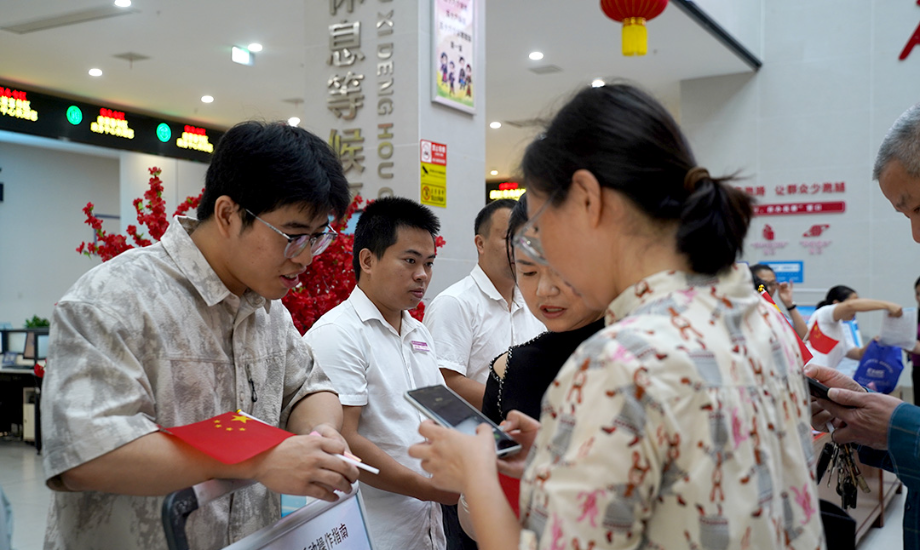 在洪江市政務(wù)服務(wù)中心,“紅色政務(wù)茶歇”區(qū)域人氣火爆。黨員志愿者身著紅馬甲,為市民遞上桂花茶、月餅,并詳細(xì)介紹“黨員先鋒崗”提供的“一對(duì)一”導(dǎo)辦、延時(shí)服務(wù)等特色舉措。政策宣傳臺(tái)前,稅務(wù)、人社、醫(yī)保等部門(mén)聯(lián)合發(fā)放高效辦成一件事宣傳手冊(cè),現(xiàn)場(chǎng)解答高頻事項(xiàng)辦理疑問(wèn)。