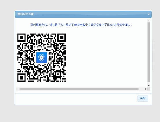 步驟三:用手機掃描彈窗圖片上的二維碼,相關簽字人員下載湖南省企業登記全程電子化APP進行簽字確認。