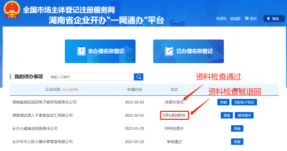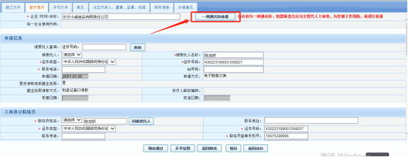 檢查設立登記資料之前,需先對企業名稱再進行一次查重,確保名稱可以使用后,再作出通過或退回修改的辦理意見。