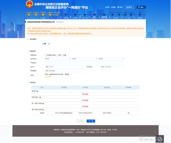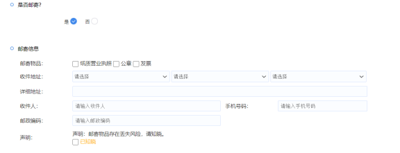 若營業執照等其他物品需要郵寄,則需要將郵寄信息填寫完整。