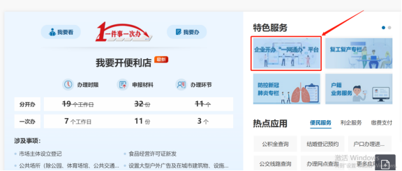 登錄成功后,再點擊【企業開辦‘一網通辦’平臺】,進入企業開辦“一網通辦”平臺。
