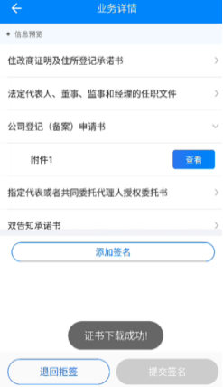點擊【添加簽名】,進入簽名流程。為確保簽名是本人操作,用戶簽名前需要進行活體檢測以及手機證書的安裝。