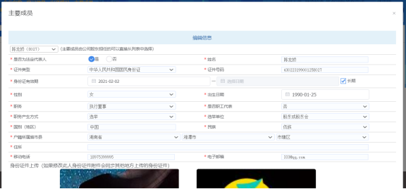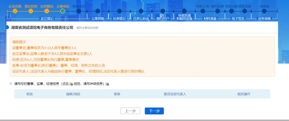 根據企業基本信息選擇的企業類型及是否設董事會和監事會,在主要成員中中錄入具體成員信息。