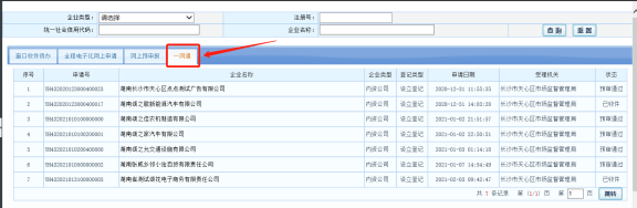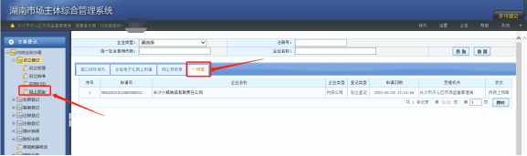 申請人提交的設立登記申請數據自動交換到登記機關內網后,工作人員對外網提交的企業設立申請進行材料檢查。在待辦中-【網上登記申請】-【一網通】中可以找到企業開辦申請數據。