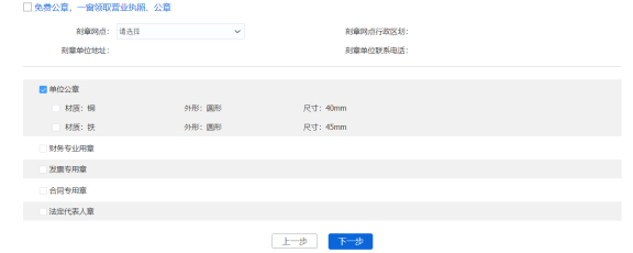 公章刻制信息錄入完畢后,點擊【下一步】按鈕,進入下一個事項信息錄入頁面。