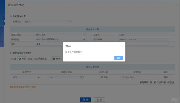 若投資人在黑名單、一人有限公司、法院老賴等名單中,系統會對其進行檢查,限制其繼續辦理。