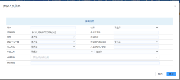 在社保人員可以添加多個,點擊【新增】按鈕,彈出社保人員信息添加頁面。