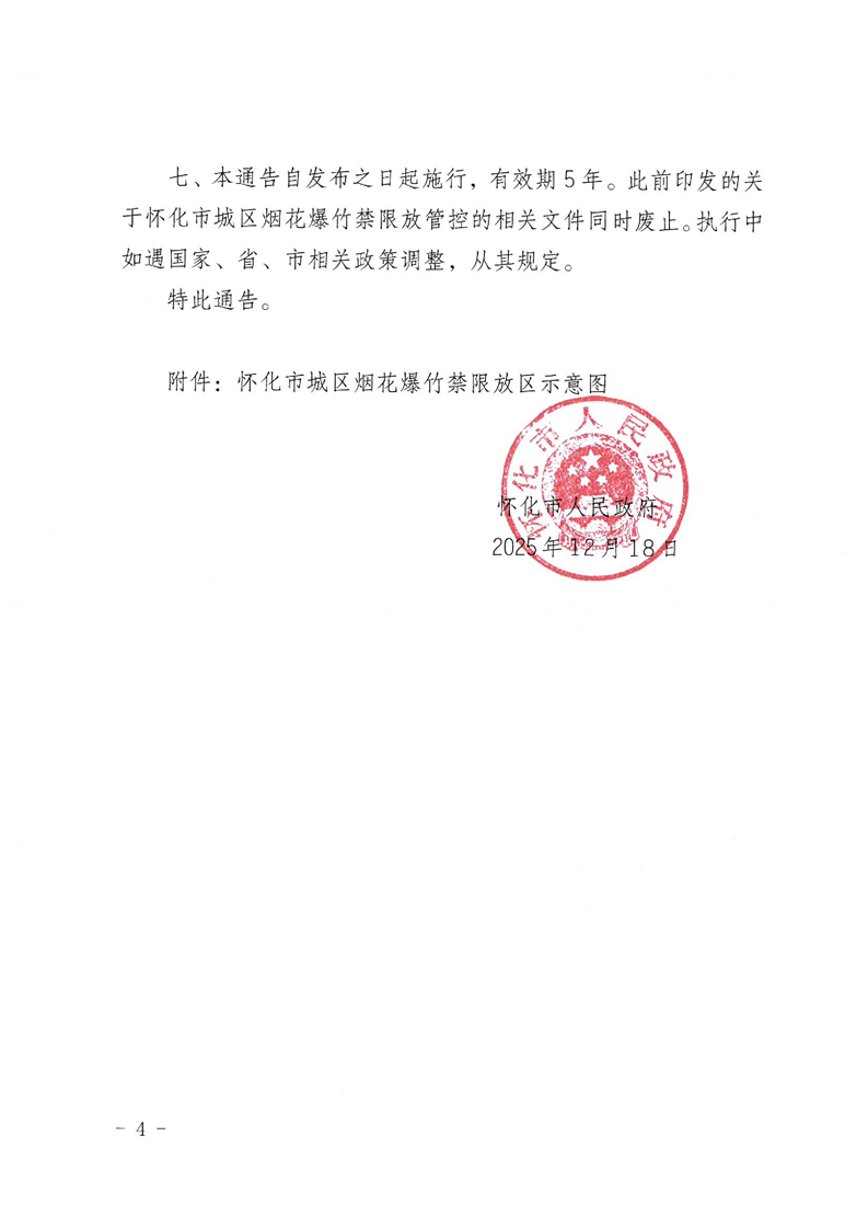 懷化市人民政府關于城區禁止和限制燃放煙花爆竹的通告