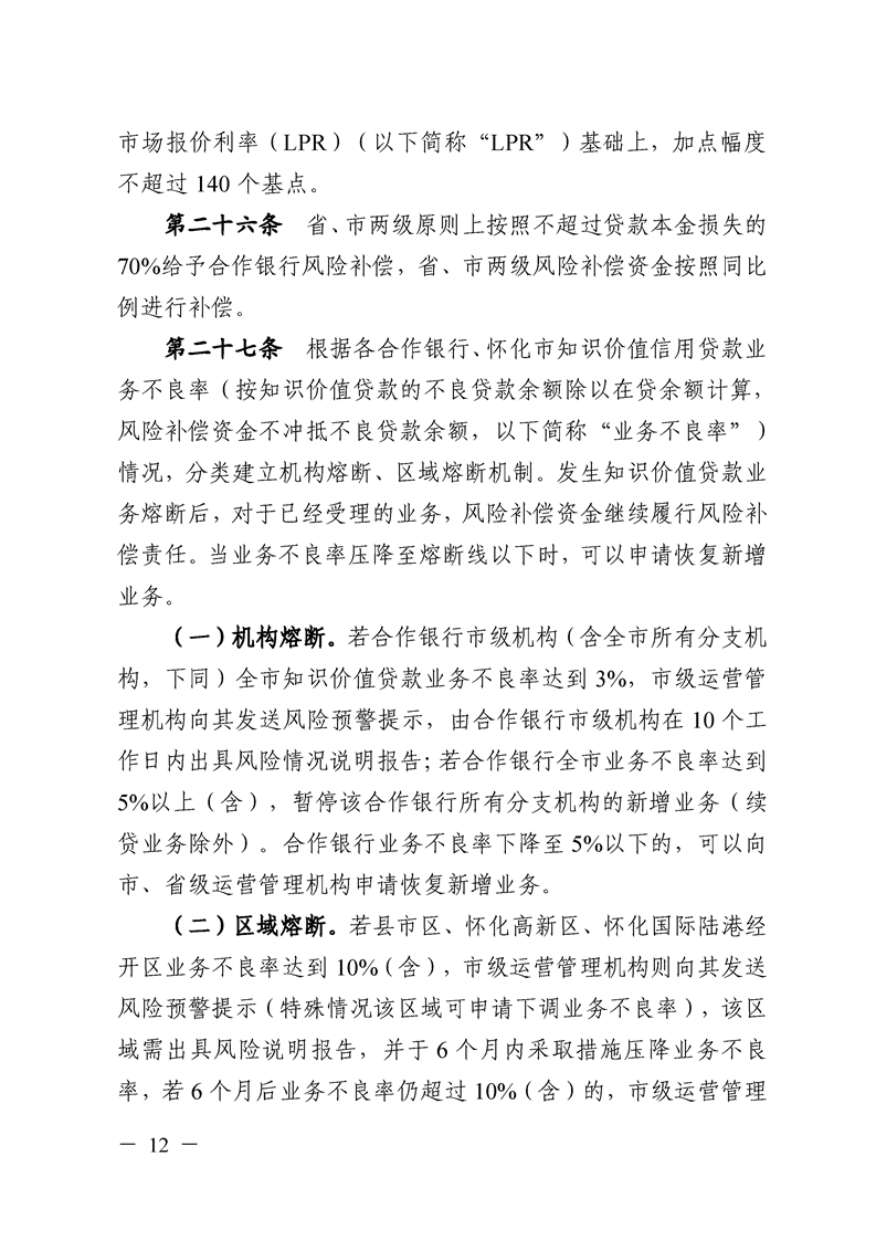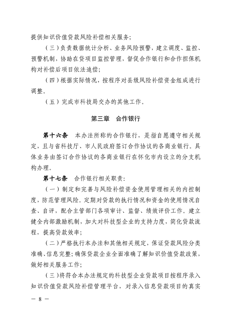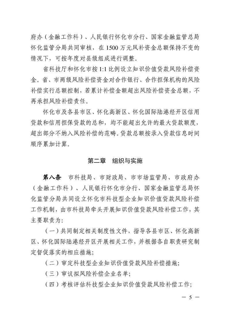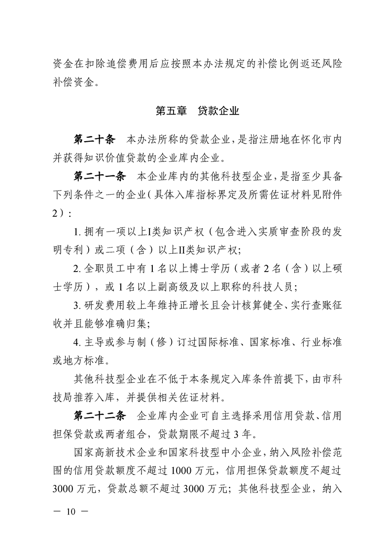 關(guān)于印發(fā)《懷化市科技型企業(yè)知識價值貸款風(fēng)險補償實施辦法》的通知