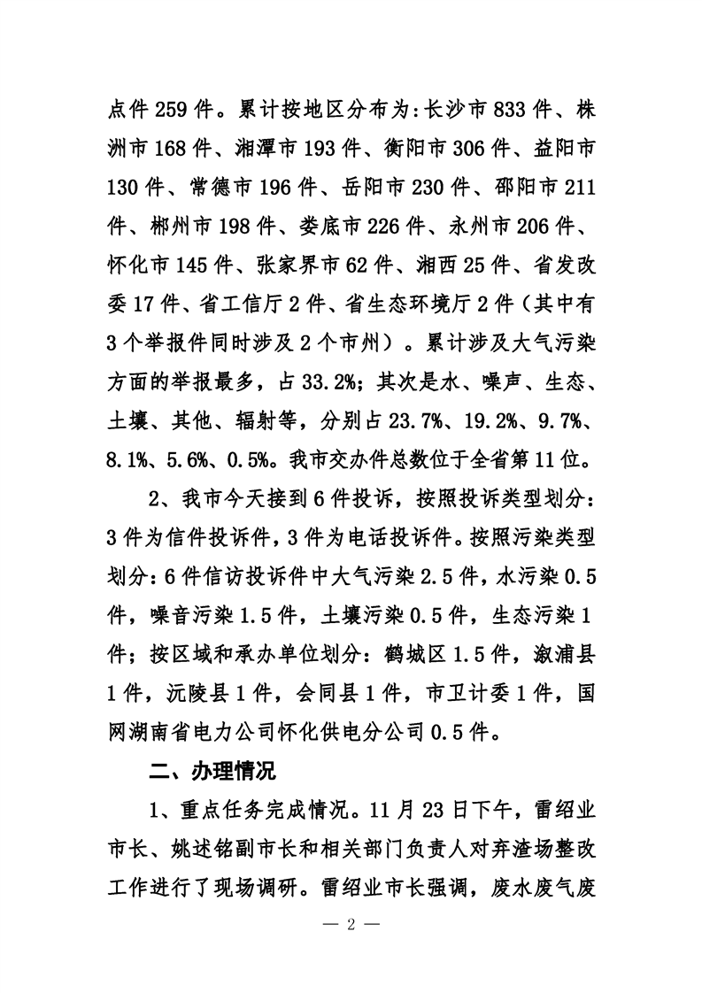 第二十五期 懷化市配合中央生態環境督察回頭看工作專報