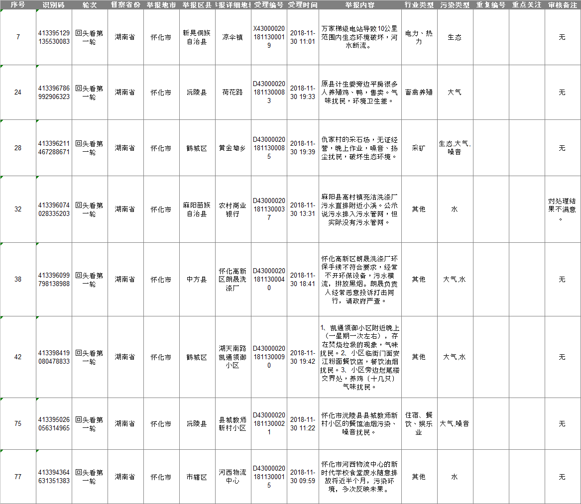 中央生態(tài)環(huán)保督察“回頭看”轉(zhuǎn)辦信訪件(12.1)