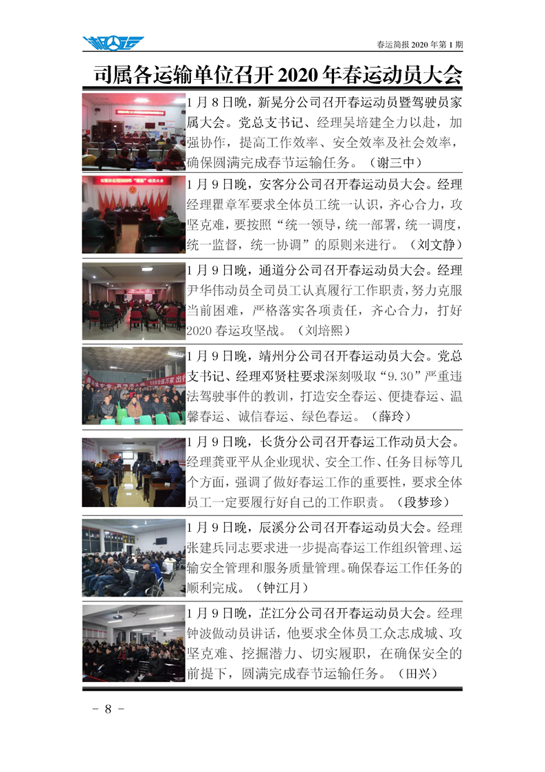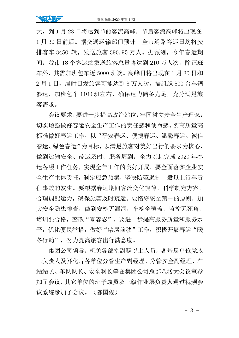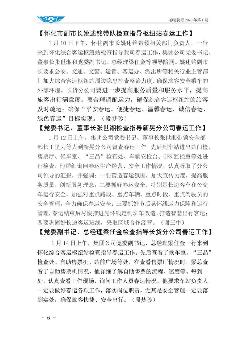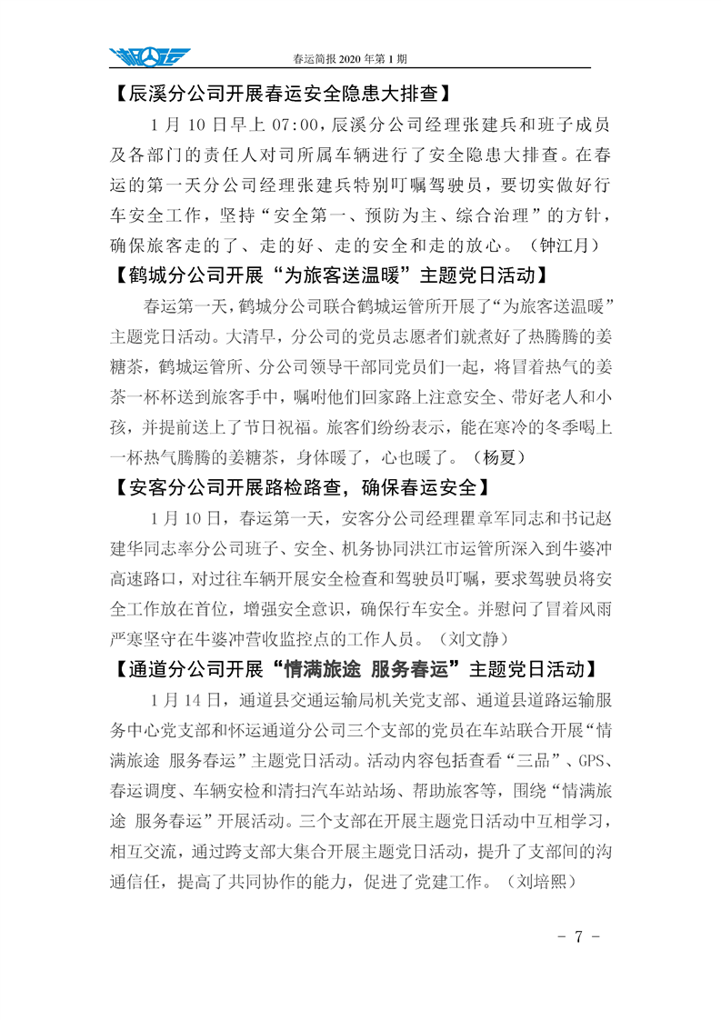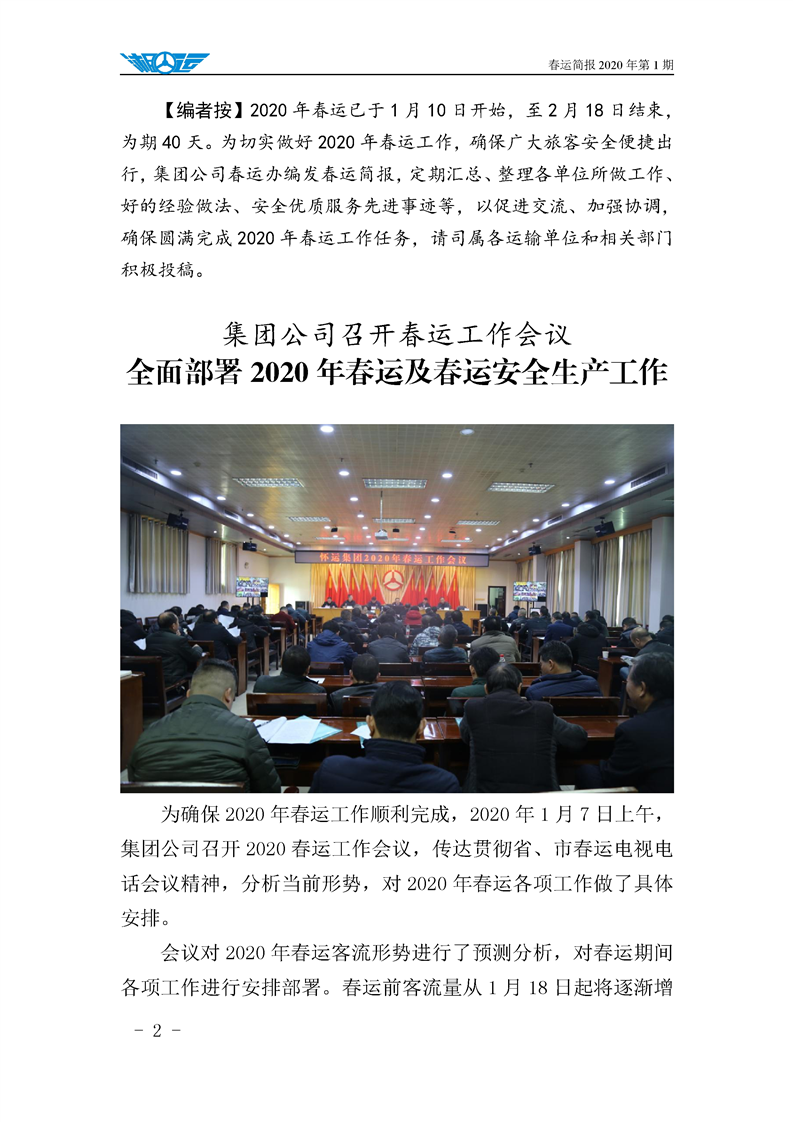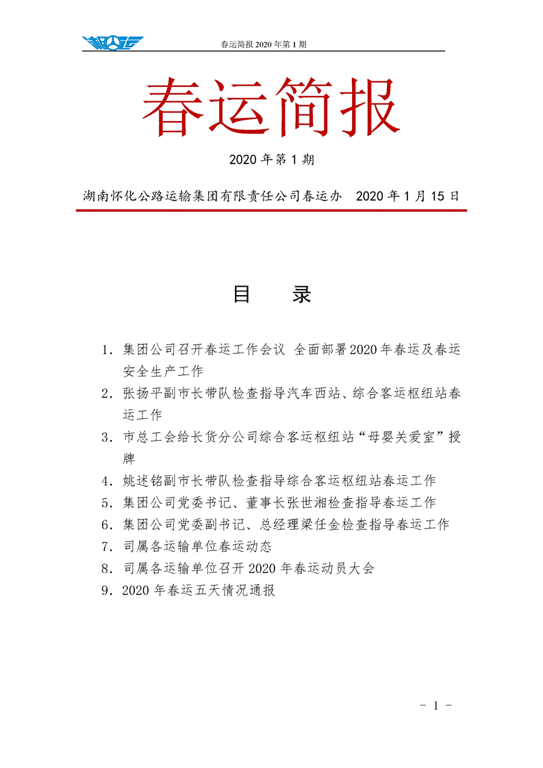 懷運集團春運簡報 2020 年第 1 期