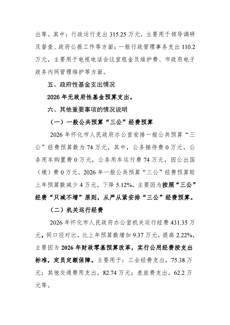 2026年度懷化市人民政府辦公室部門預算公開說明