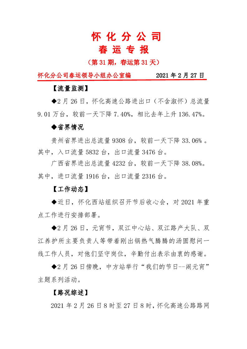 省高速集團懷化分公司第31期春運專報