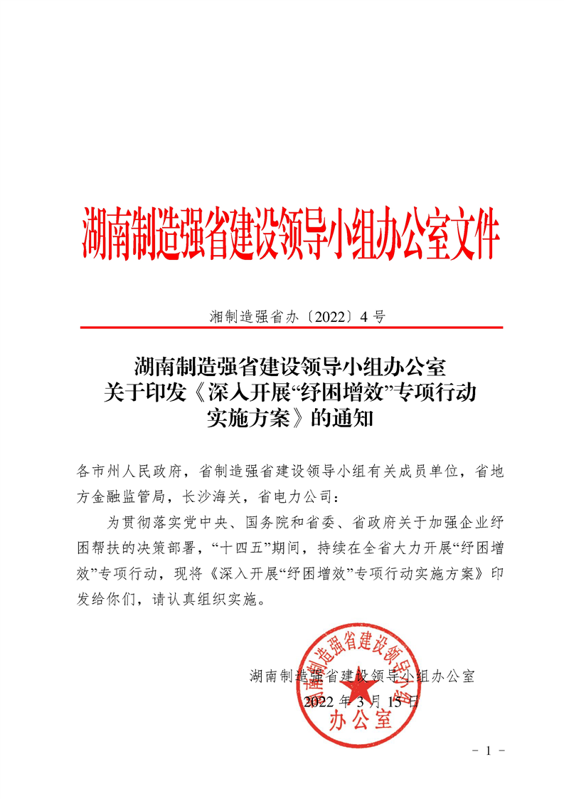 湖南制造強省建設領導小組辦公室關于印發《深入開展“紓困增效”專項行動實施方案》的通知