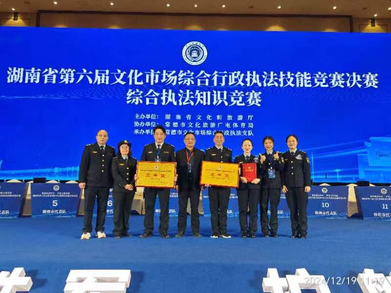 ????12月19日,湖南省第六屆文化市場(chǎng)綜合行政執(zhí)法技能競(jìng)賽決賽在常德圓滿落幕。本次比賽為期三天,設(shè)置體能測(cè)試、政策法規(guī)知識(shí)、執(zhí)法文書制作及案卷歸檔、案卷糾錯(cuò)、平臺(tái)應(yīng)用及網(wǎng)絡(luò)案件證據(jù)固定、綜合執(zhí)法知識(shí)等6個(gè)科目。懷化市采用新老結(jié)合組隊(duì),全力以赴迎戰(zhàn),經(jīng)過(guò)激烈角逐,取得多項(xiàng)榮譽(yù):獲團(tuán)體單項(xiàng)案卷糾錯(cuò)三等獎(jiǎng)、平臺(tái)應(yīng)用及網(wǎng)絡(luò)案件證據(jù)固定三等獎(jiǎng),沅陵縣文旅廣體局郭麗娟獲政策法規(guī)知識(shí)個(gè)人二等獎(jiǎng)。