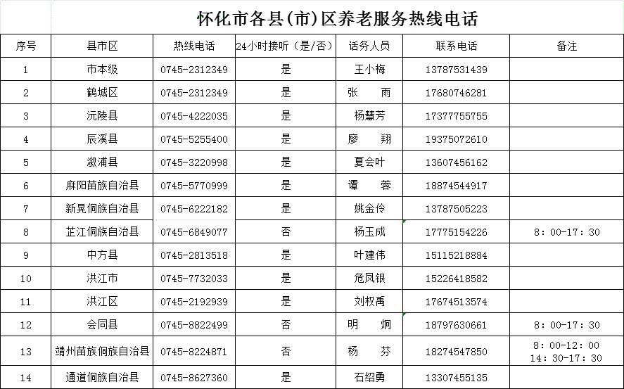 關于向社會公布懷化市養老服務熱線和養老服務機構信息的公告