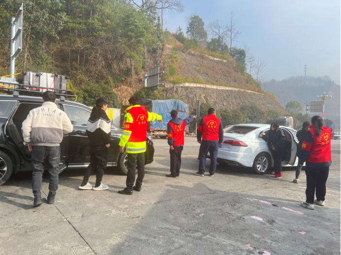 與此同時,在懷化高速公路各收費站、服務區,到處都有身穿紅馬甲、投到小紅帽的“路燈”志愿者在人群車流中來回穿梭的身影,新春“福”字、暖心姜茶、引導指路、發放口罩……一幕幕溫馨的畫面正在四處上演。“剛回到家鄉就收到這么大個‘福’字,新年一定好運連連。”在靖州收費站出口,周師傅領到一個大“福”字開心地說。