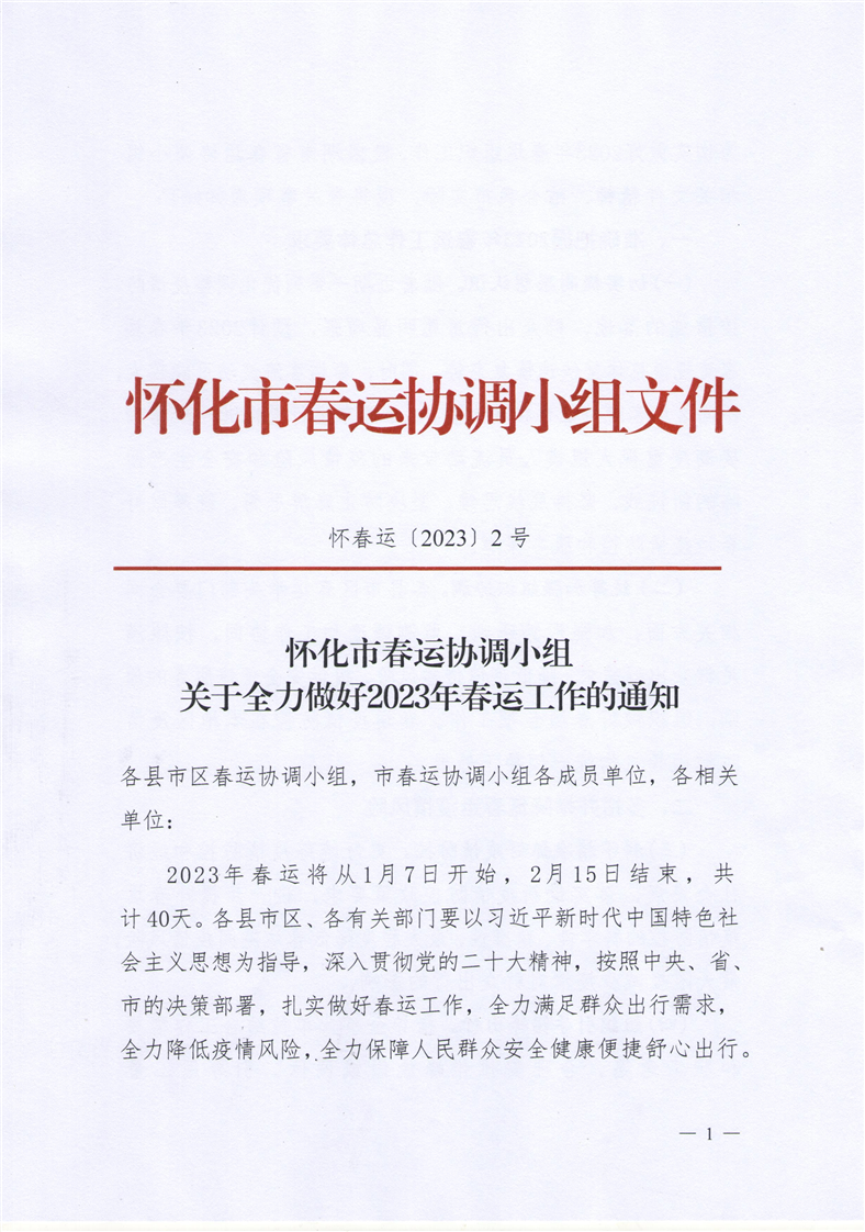 懷春運〔2023〕2號 關于全力做好2023年春運工作的通知