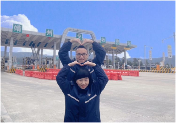 吳禮洲、楊麗香夫婦同是會同中心大站的員工,夫妻倆在高速一線為過往司乘貼心服務,至今已有9年。因為工作需要和輪班安排,他們又一次在崗位上過除夕。像所有美麗動人的愛情故事一樣,吳禮洲和楊麗香相識相戀于高速公路一線收費站,工作中共同進步,生活上相互扶持,他們既是夫妻,又是同事,在不一樣的角色里詮釋著同樣的堅守、同樣的精彩。