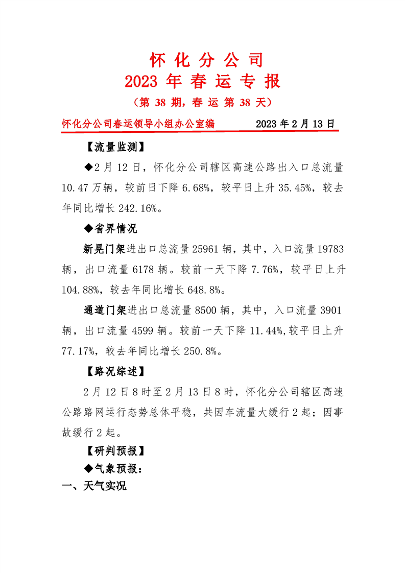 2023年懷化分公司春運專報-第38期