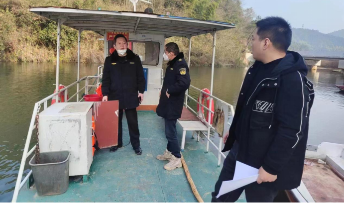 1月9日,靖州縣交通運輸綜合行政執(zhí)法大隊執(zhí)法人員對一鄉(xiāng)鎮(zhèn)渡口的渡船進行檢查