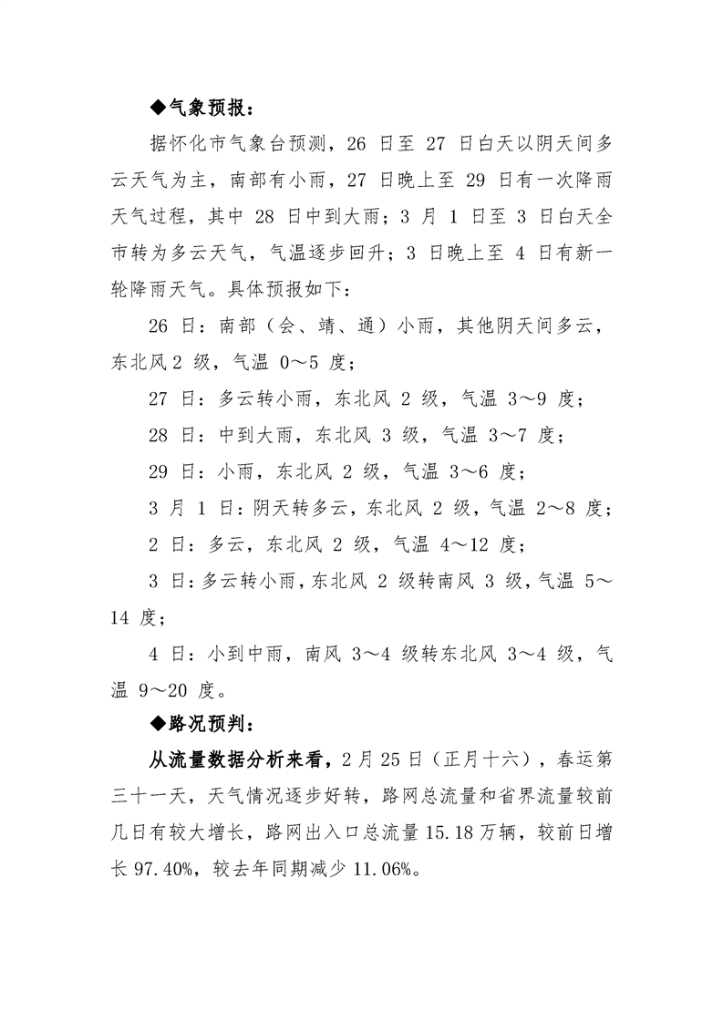 2024年懷化分公司春運專報-第32期