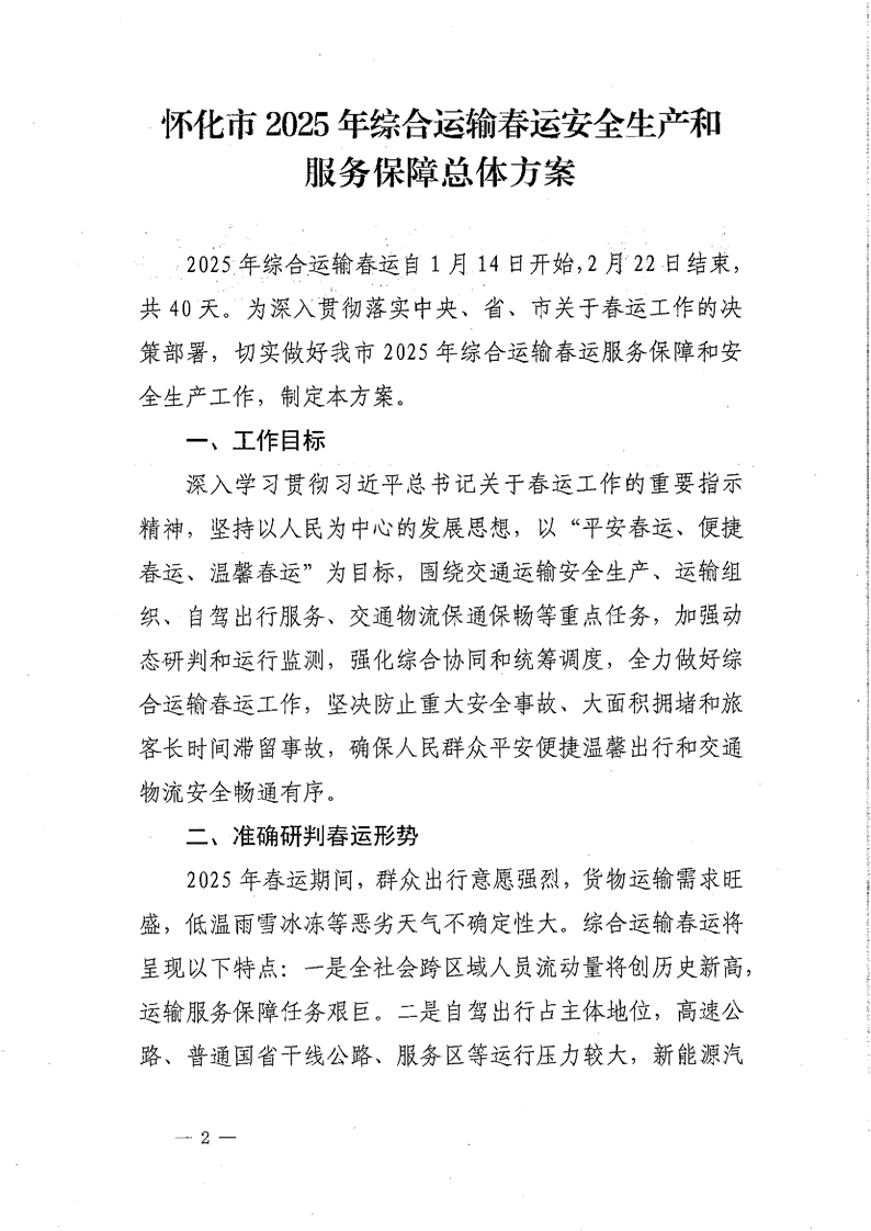 2025年綜合運輸春運安全生產和服務保障總體方案